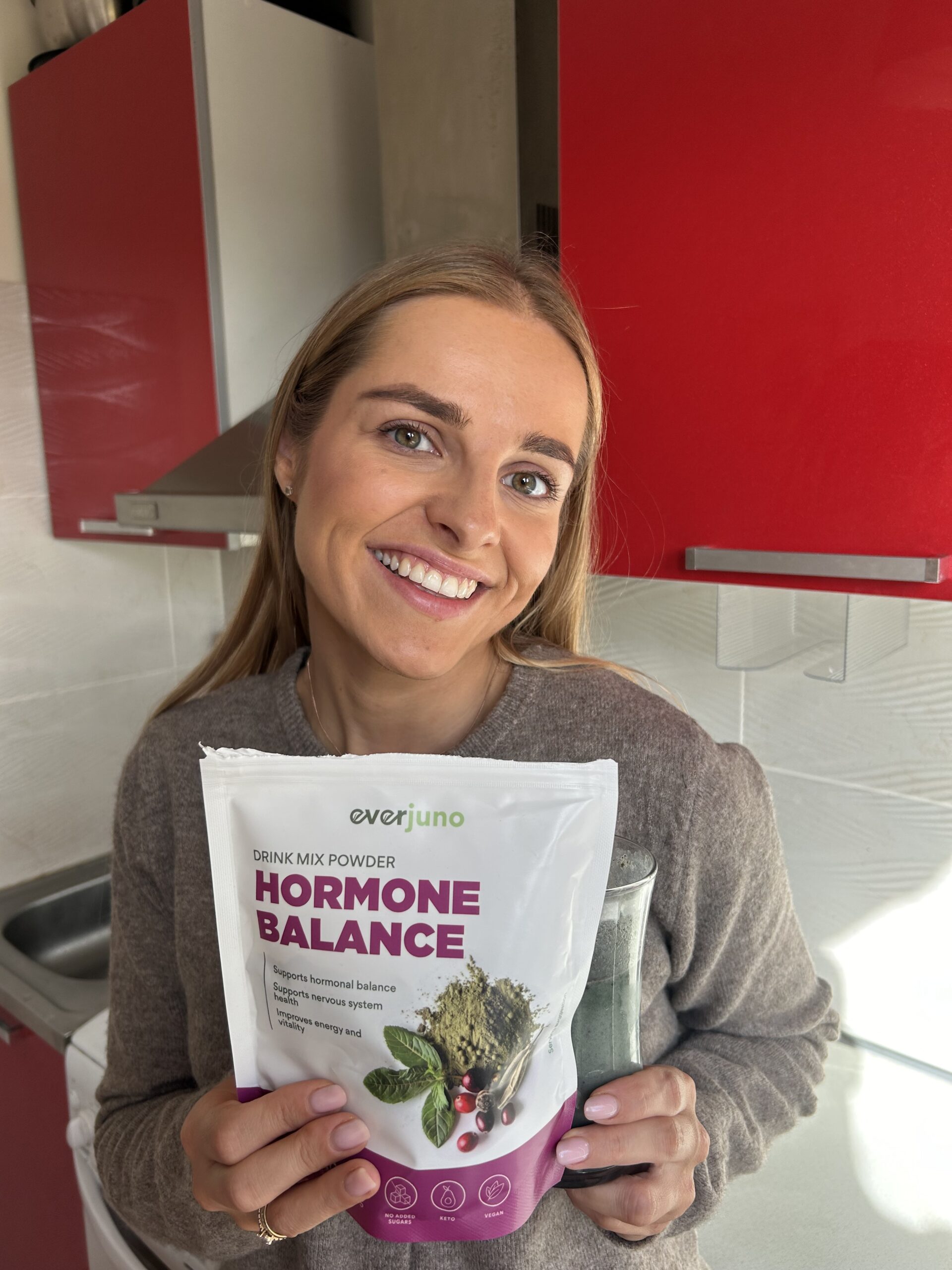 Gėrimo milteliai „Hormone Balance“, natūralaus juodųjų serbentų skonio.